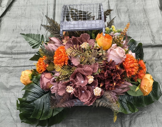 Stroik w koszu w kształcie księzyca w kolorach jesieni.