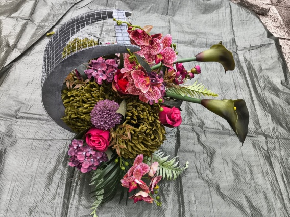 Stroik w koszu - kalie, chryzantemy i storczyki #017
